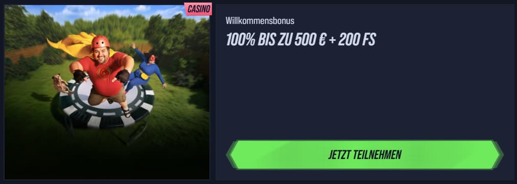 Willkommensbonus | 100% bis €500 + 200 Freispiele (+ Bonus Crab je nach Aktion) |